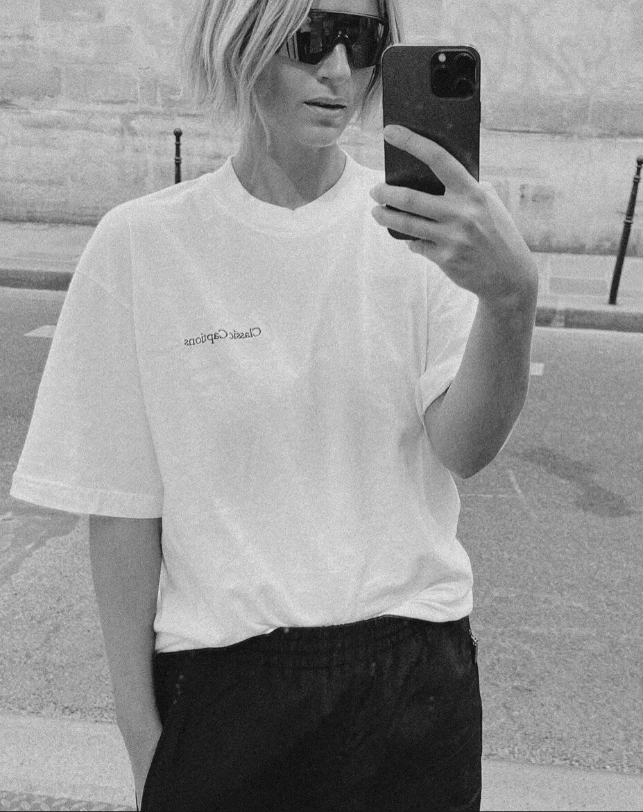 6.5オンスの重量感と丈夫さを持ち、洗濯をしても縮みにくいのが特徴のTシャツです。クルーネックのネックラインはやや高めにデザインされています。