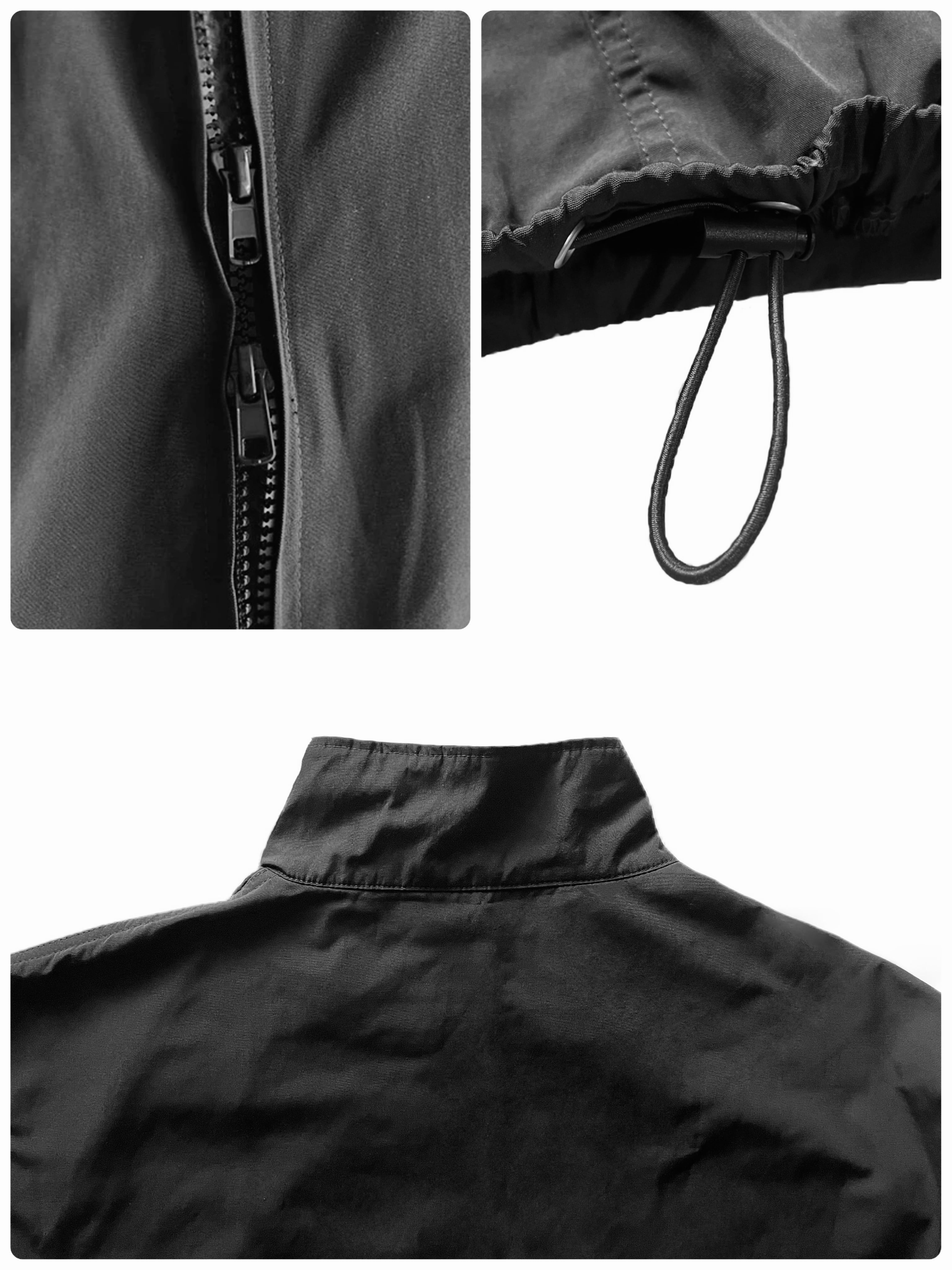 フロントはWジップ仕様。裾はドローコード付きなので、お好みの丈感で絞ることでシルエットの変化、全体的なバランスも自由自在にお楽しみ頂けます。