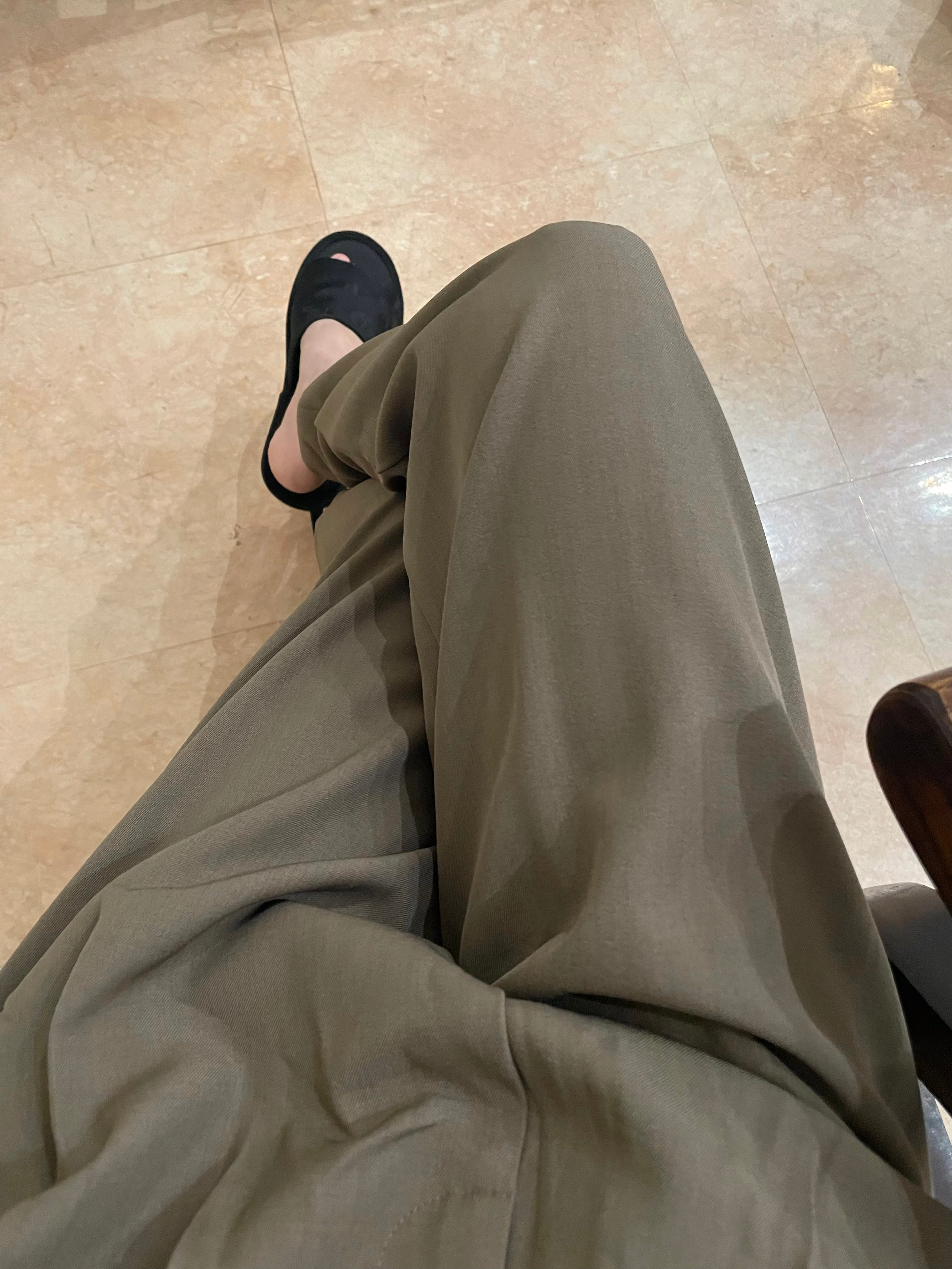 Relax Fit Wide Leg Slacks (Light Brown/Dark Green)