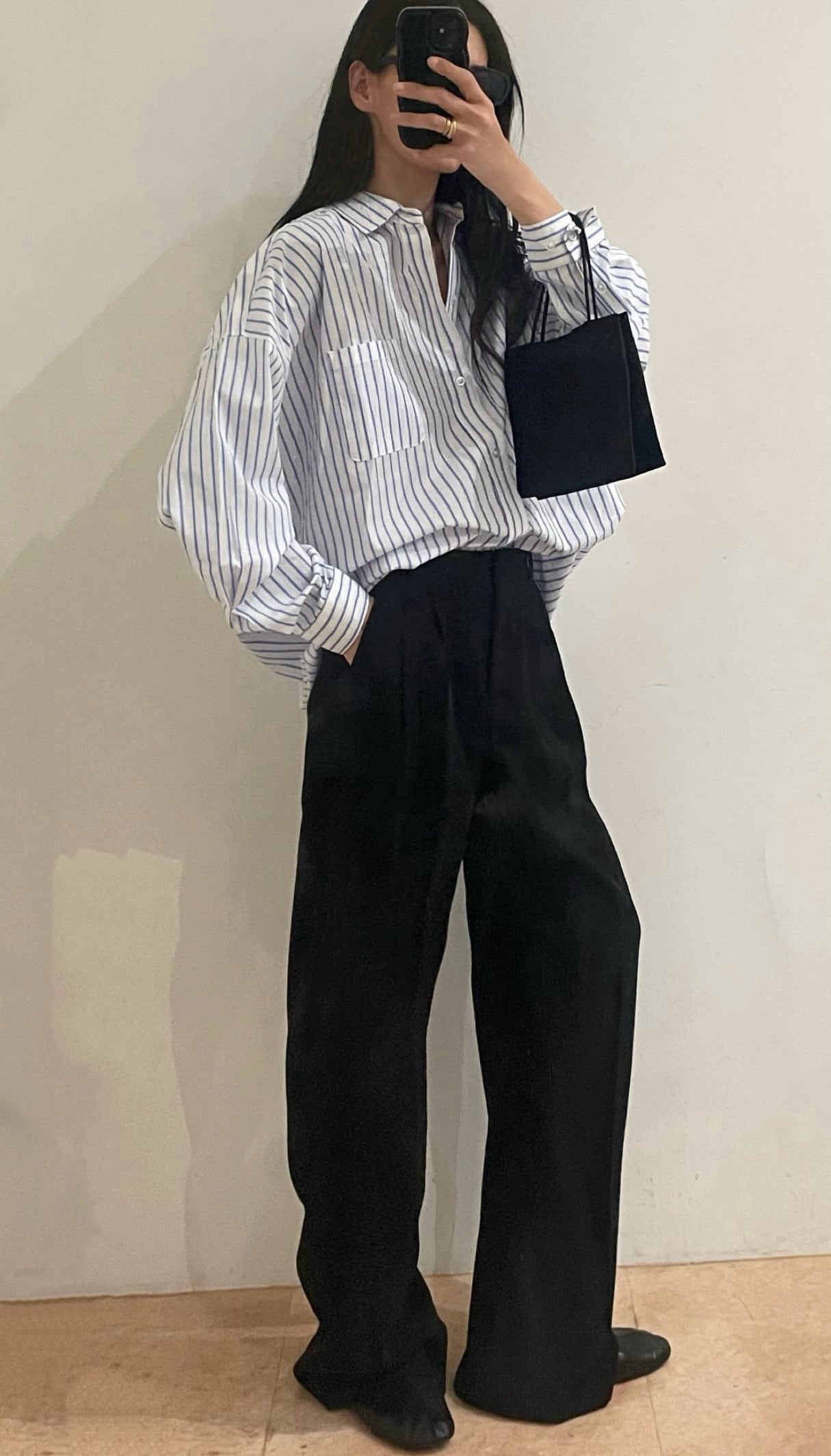 Basic Oversized Cotton Shirt (White/Striped Blue)